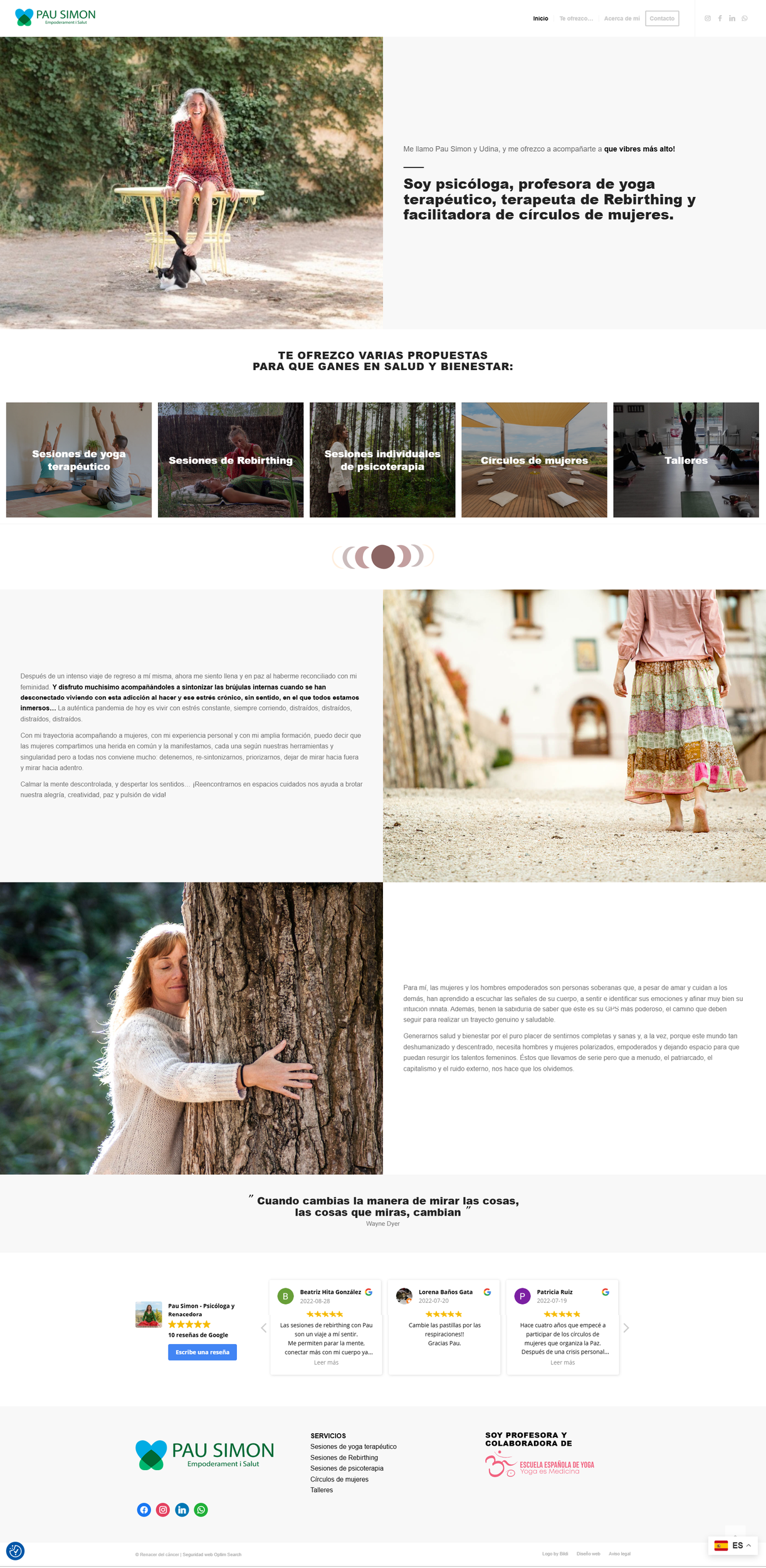 Pau quería una página web que reflejara su esencia y transmitiera la calidez y profundidad de su trabajo. Diseñamos un espacio digital armonioso y accesible, con una estructura clara que facilitara la navegación y destacara sus servicios.