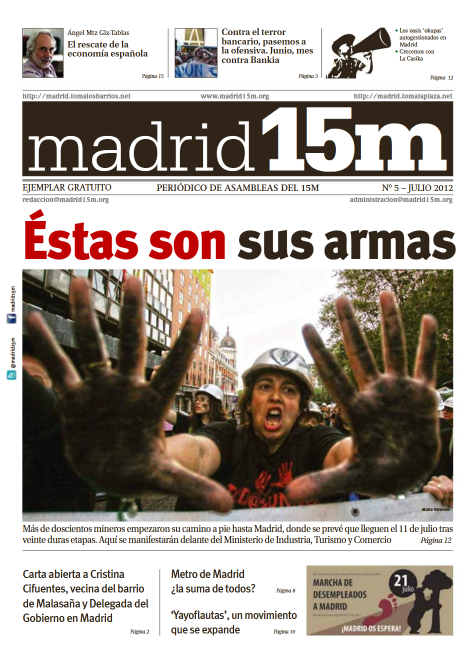madrid15M, un rotativo nacido de un proyecto popular a raíz de Movimiento 15M. Su objetivo era ofrecer una imagen veraz de la realidad social y servir como una herramienta alternativa de información.